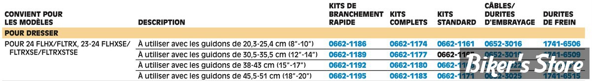 REMARQUE : Les kits sont basés sur l’utilisation de risers de 2” avec guidons de type Ape Hanger.