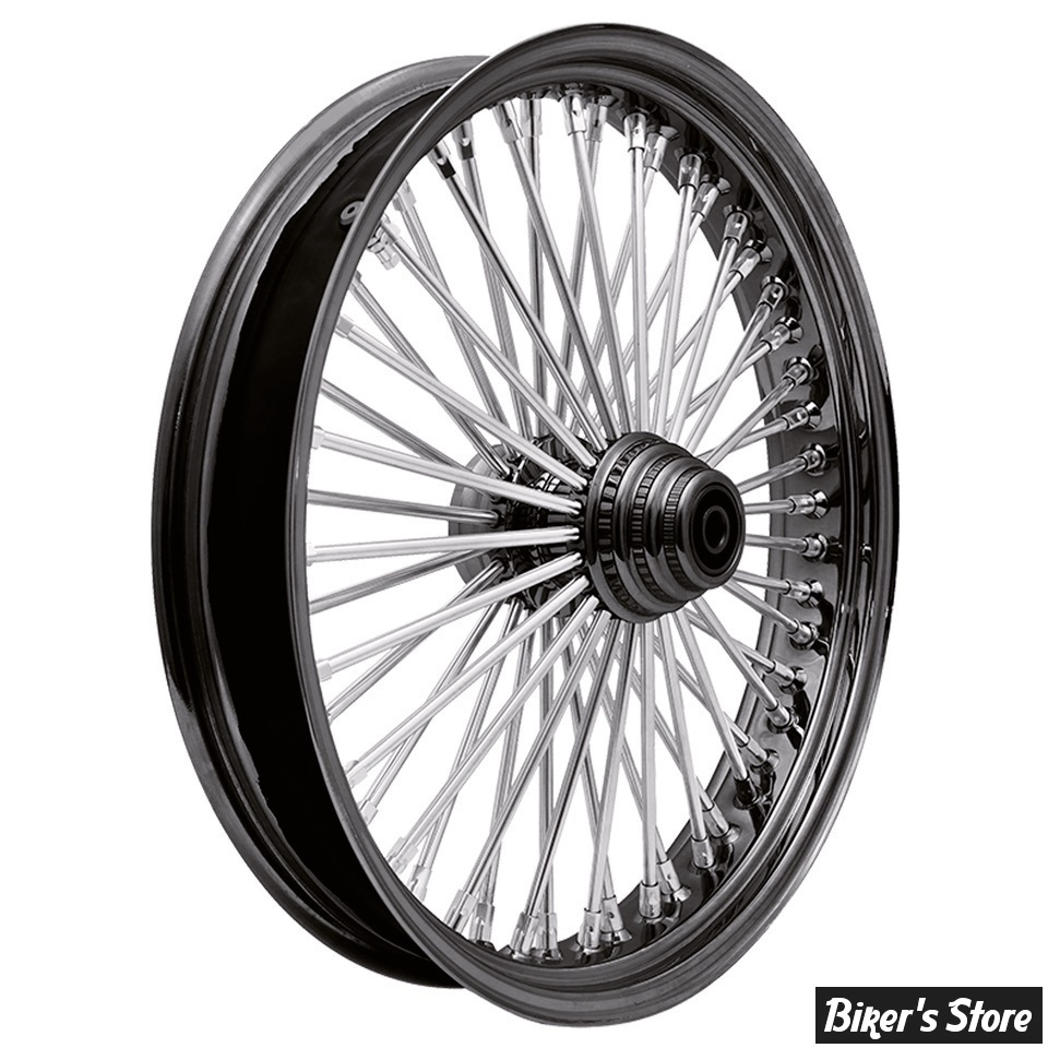 Ces roues avec 50 gros rayons, aussi connues sous le nom de "Fat Daddy" sont fabriquées aux USA et utilisent un rayonnage radial avec des rayons droits de 3/8" (9.5mm) de diamètre en inox qui sont polis ou noirs avec des têtes de rayon custom, moyeux usinés en aluminium et jantes chromées.