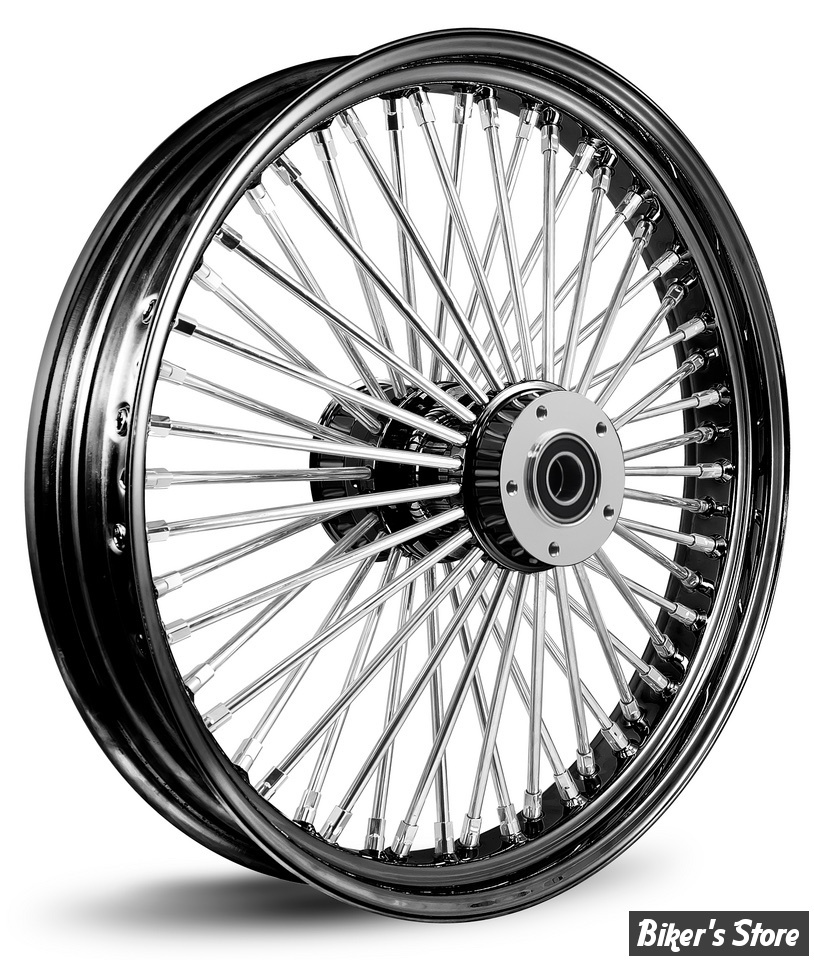 Pièces pour Custom > Harley-Davidson > ROUES > - 18 x 4.25 - ROUE ARRIERE 52 RAYONS - FAT SPOKE MAMMOTH M52 - TOURING 2008 UP ABS - ZODIAC - MOYEU : NOIR / JANTE : NOIR / RAYONS : POLI / ECROUS : POLI