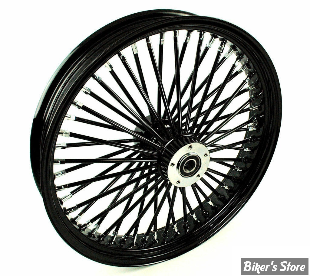 - 18 X 5.50 - ROUE ARRIERE 52 RAYONS - FAT SPOKE MAMMOTH M52 - SOFTAIL M8 FLFB/S / FXBR/S / FXDR/S - ZODIAC - MOYEU : NOIR / JANTE : NOIR / RAYONS : NOIR / ECROUS : POLI