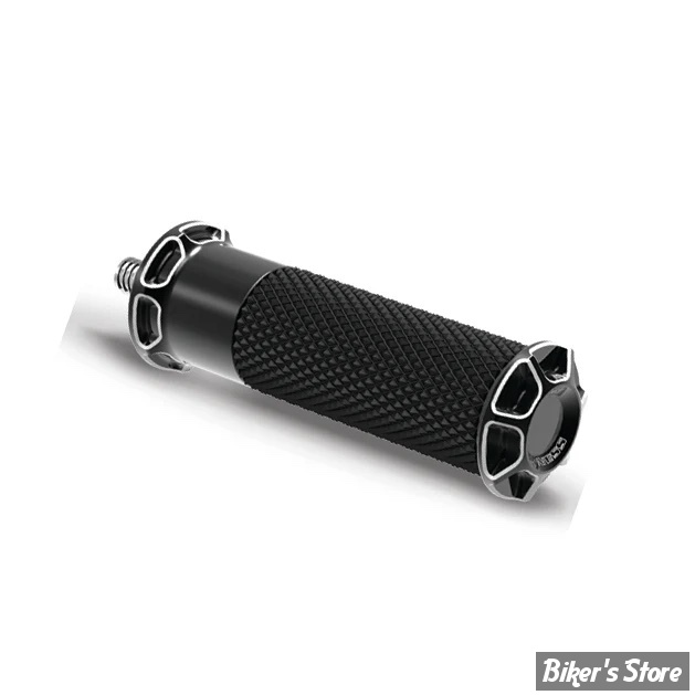 Knurled style footpegs are made from a forged steel shaft, knurled style rubber for excellent traction and billet aluminum accents for a clean look
