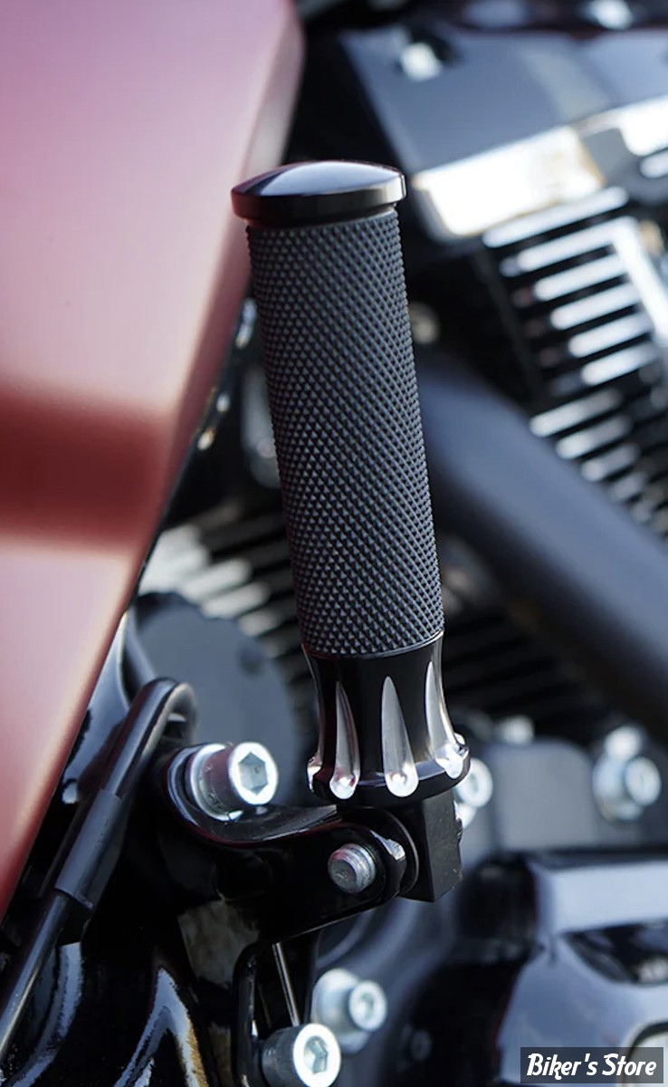 SAUF pour Reposes pieds conducteur des HD avec empreintes de reposes pieds décalés : Sportster 1200N, 1200T à partir de 2007, 1200V, 1200X, 1200C, 1200CX à partir de 2013, XG Street à partir de 2015, Softail FXSB / SE à partir de 2013, FXS Blackline de 2011 à 2013, Softail Rocker FXCW/C de 2008 à 2011 (Liste établie au 1er Janvier 2018, sous réserve de mise à jour). Pour certains modèles, des adaptateurs spécifiques sont proposés pour utiliser ces reposes pieds.