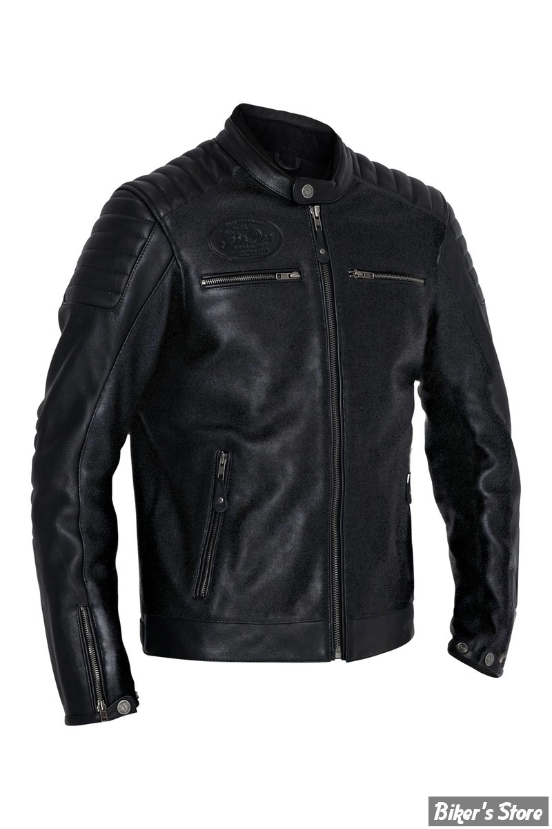 The important thing is that this AAA-certified leather jacket offers high safety levels in every situation and has protector pockets in the shoulders, elbows and back. Design features include padded shoulders and elbows and a popped collar with press-stud fastening.