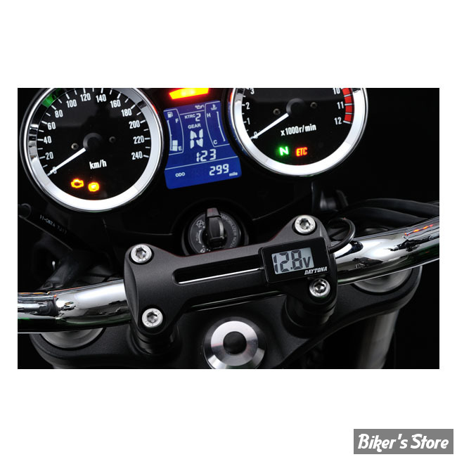 Allows you to monitor battery voltage and charging current and take action before problems arise. Measuring range 7.5 to 18 Volt. Comes with white backlight that will start flashing red when voltage drops below 12V. The gauge is IPX7 waterproof (30 minutes submerged in 1 meter of water) so extreme rain or bike washing will not be an issue. Installs with included adhesive tape. Complete with wiring and wiring diagram. Gauge dimensions: 37mm wide x 25mm high x 10.8mm deep.
