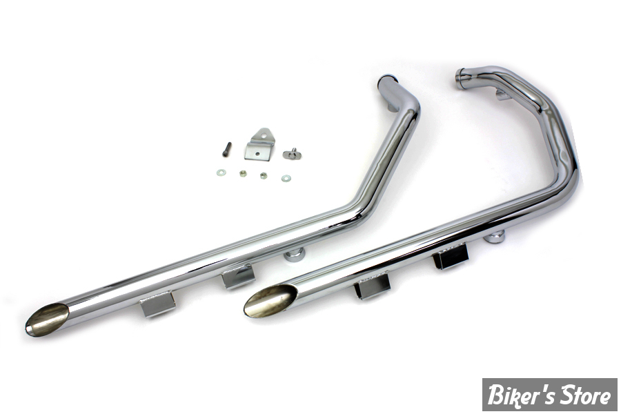 Les tuyaux de traînée avec port de capteur d'oxygène et extrémités coupées par barre oblique présentent une finition chromée. Ces tuyaux ont un diamètre de 1 à 3/4" et une longueur de 34".