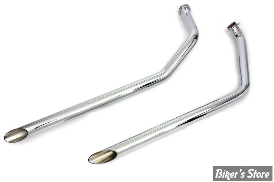 Chrome drag pipe set slash cut style with channel mounts has a 1-3/4" diameter X 38" long.