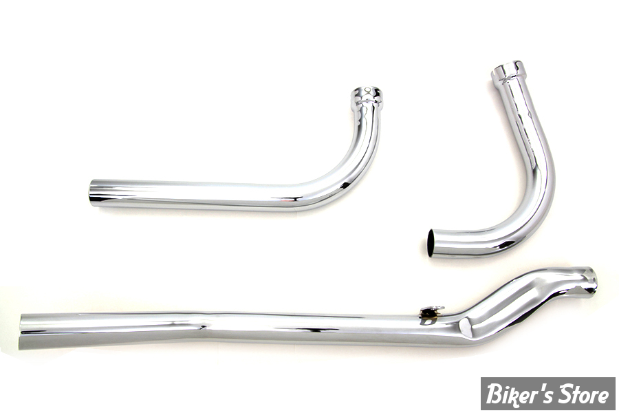 Chrome. Tuyaux de tête de 1 3/4". Si vous le souhaitez, des silencieux peuvent être montés. Le tuyau arrière s'enroule autour du réservoir d'huile et devient relevé. Kickstart. Pare-chaleur arrière MCS903398. Utilisez les colliers de montage MCS508090 et MCS512595