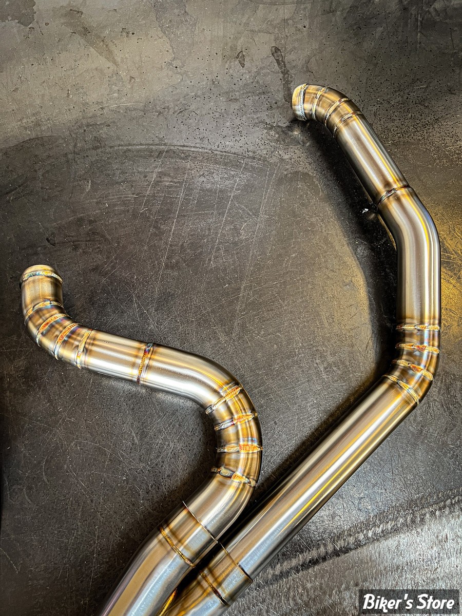 Standard Stepped : Les tuyaux de tête en acier inoxydable de .065" passent de 1 3/4" à 1 7/8" et pénètrent dans le silencieux par des sections de 2"