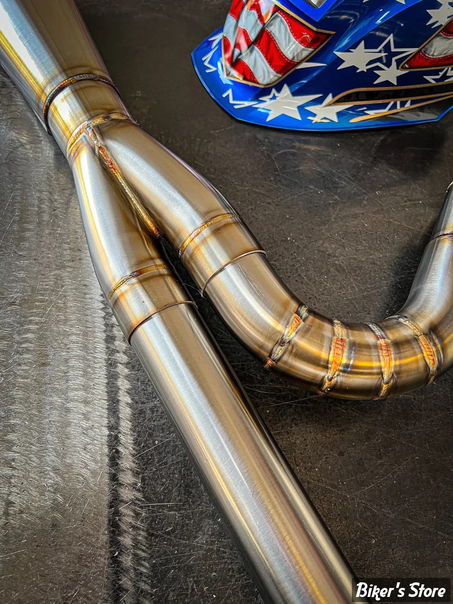 Standard Stepped : Les tuyaux de tête en acier inoxydable de .065" passent de 1 3/4" à 1 7/8" et pénètrent dans le silencieux par des sections de 2"