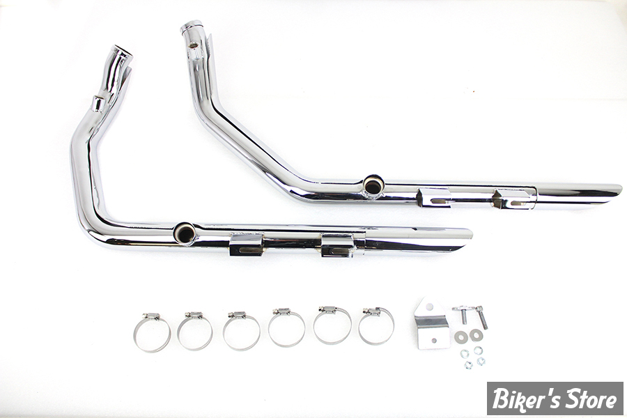 Ensemble de drag pipes 1-3/4" avec un ensemble de boucliers thermiques de 2" à couverture complète, tous deux dotés d'une finition chromée.