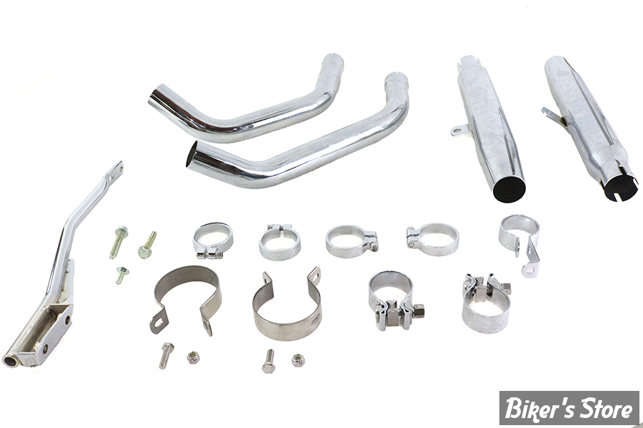 La conception originale en plusieurs pièces comprend des silencieux chromés, des tuyaux d'en-tête et des supports de montage.