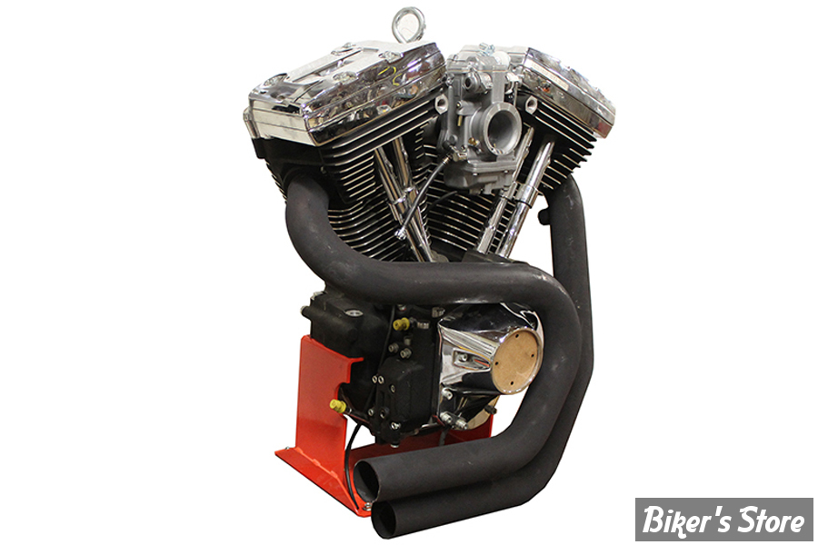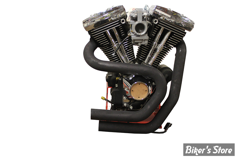 L'ensemble d'en-têtes présente une finition noire et est pour les moteurs Evolution et TC-88. Le tuyau arrière présente une forme enveloppante et les positions d'en-tête avant à l'extérieur du cadre.