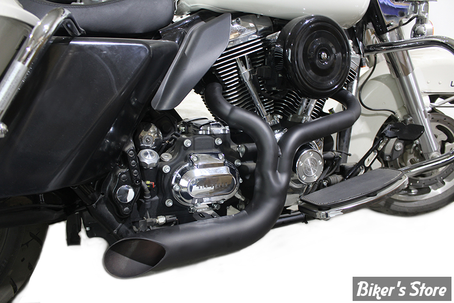 FXD 2:1 lake side pipe exhaust features a chrome finish. Baffle not included.