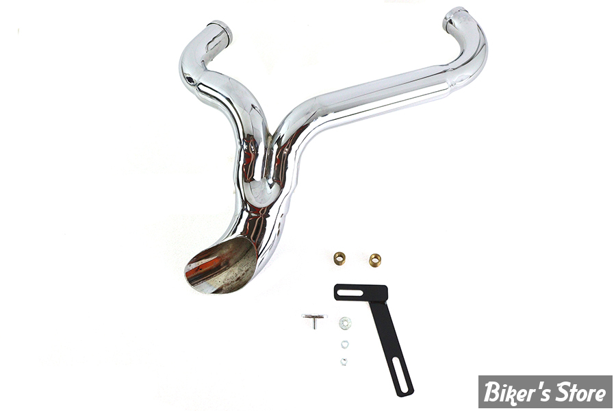 These pipes feature 1-3/4" head pipes that are blended into a 2" header pipe that transitions into a 3" collector with a kickout end. Collector does not have a baffle.