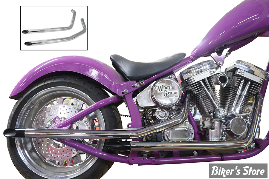Drag pipes feature slash cut ends with long black tips.