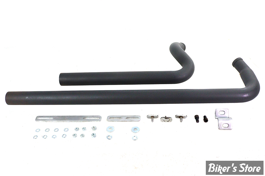 Straight pipes may be fitted with mufflers or baffles, available separately. *NOTE: Does not work with passenger footpegs. *WARNING: Exhaust reaches high temperatures V-Twin is not liable for injuries. Use correct heat shields or fiberglass wraps. **CAUTION: These exhaust products are not legal for sale or use in California on pollution controlled vehicles. These products are intended for non-highway only.