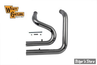 Echappement courbé chromé présente une construction de 2-1/4" de diamètre avec une conception de balayage vers le haut.