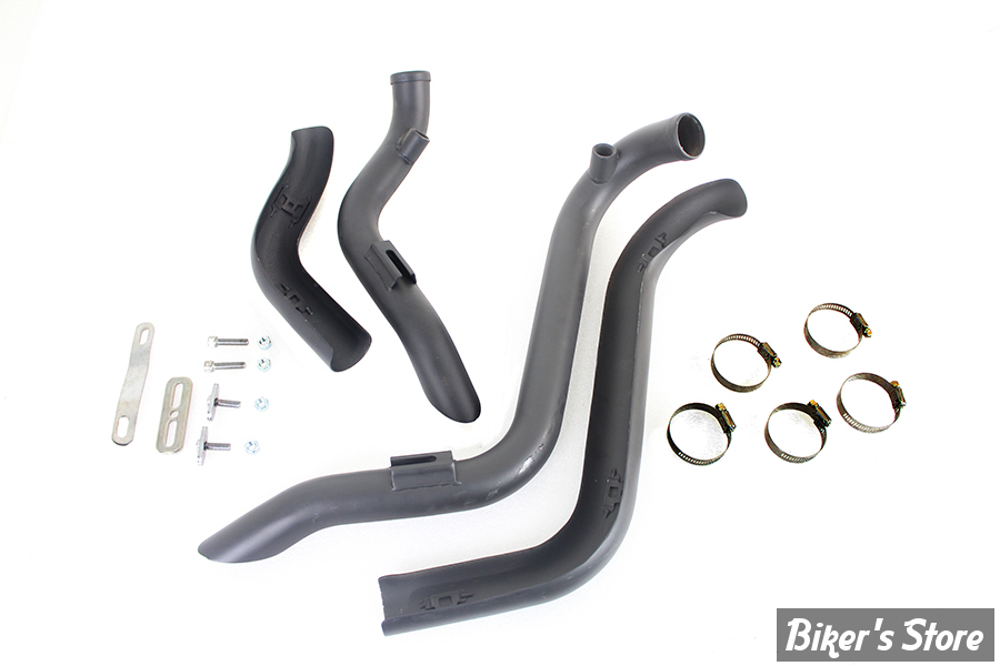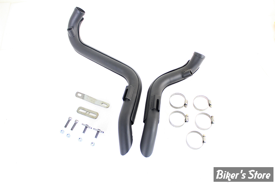 Straight down drag pipe set is black and features slash cut ends with heat shields included.