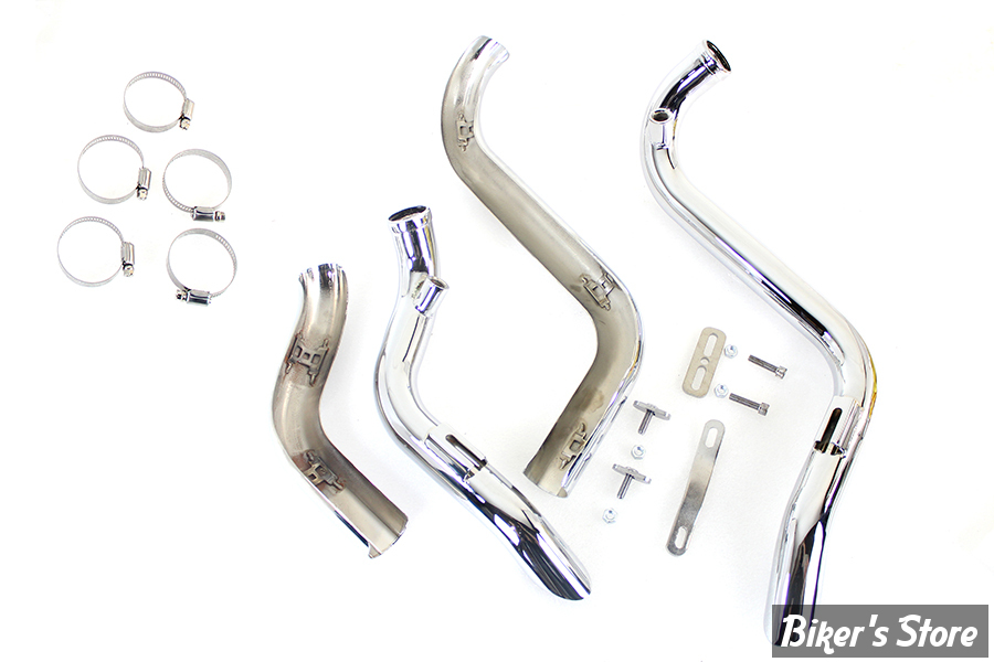 Straight down drag pipe set is black and features slash cut ends with heat shields included.