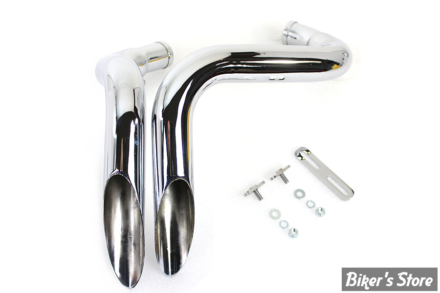 Straight down drag pipe set is black and features slash cut ends with heat shields included.