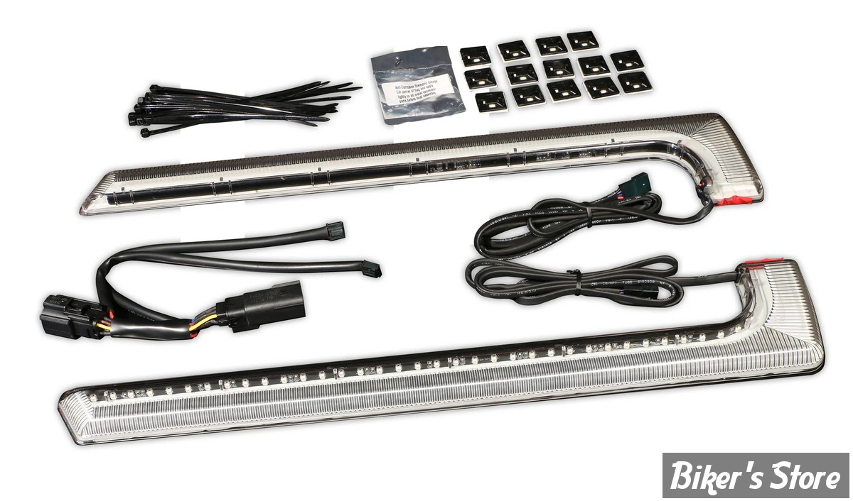 3 fonctions d'éclairages - Pour sacoches d'origine des Touring à partir de 2014 (sauf FLHXSE, FLTRXSE) et de 1997 à 2013 avec adaptateur (à commander séparément). Le Kit