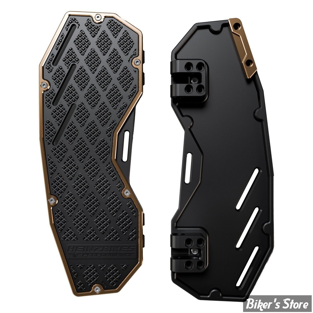 Avec notre design unique et la plus haute qualité, fabriqués à partir d'aluminium billet de haute qualité et fraisés CNC, ils sont plus robustes et plus légers que les autres floorboards du marché - nos nouveaux planchers HeinzBikes® PERFORMANCE. Les FloorBoards ont été conçus pour offrir une garde au sol maximale sans compromettre le confort du FloorBoard sur votre vélo. La GRIP Surface garantit un maintien maximal et une surface de marche adaptée à la forme du pied vous permet d'avoir un contrôle total sur le vélo - même dans des situations extrêmes ! La vis de réglage de l'inclinaison permet d'ajuster la position de conduite préférée par le conducteur et le SlidePad interchangeable sur le dessous protège les FloorBoards même dans des conditions extrêmes.
