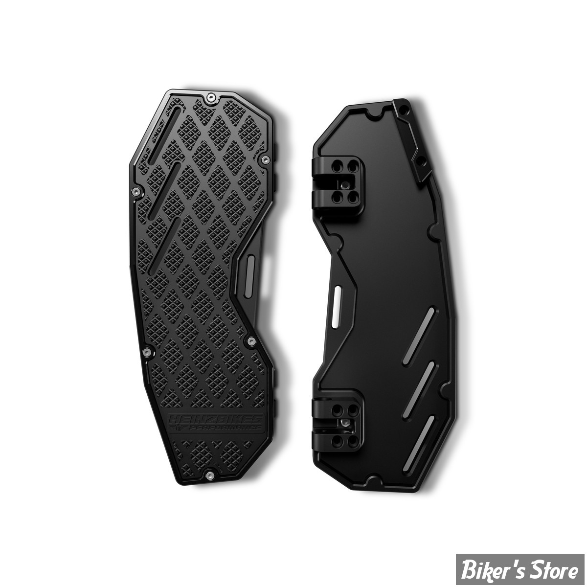 Avec notre design unique et la plus haute qualité, fabriqués à partir d'aluminium billet de haute qualité et fraisés CNC, ils sont plus robustes et plus légers que les autres floorboards du marché - nos nouveaux planchers HeinzBikes® PERFORMANCE. Les FloorBoards ont été conçus pour offrir une garde au sol maximale sans compromettre le confort du FloorBoard sur votre vélo. La GRIP Surface garantit un maintien maximal et une surface de marche adaptée à la forme du pied vous permet d'avoir un contrôle total sur le vélo - même dans des situations extrêmes ! La vis de réglage de l'inclinaison permet d'ajuster la position de conduite préférée par le conducteur et le SlidePad interchangeable sur le dessous protège les FloorBoards même dans des conditions extrêmes.