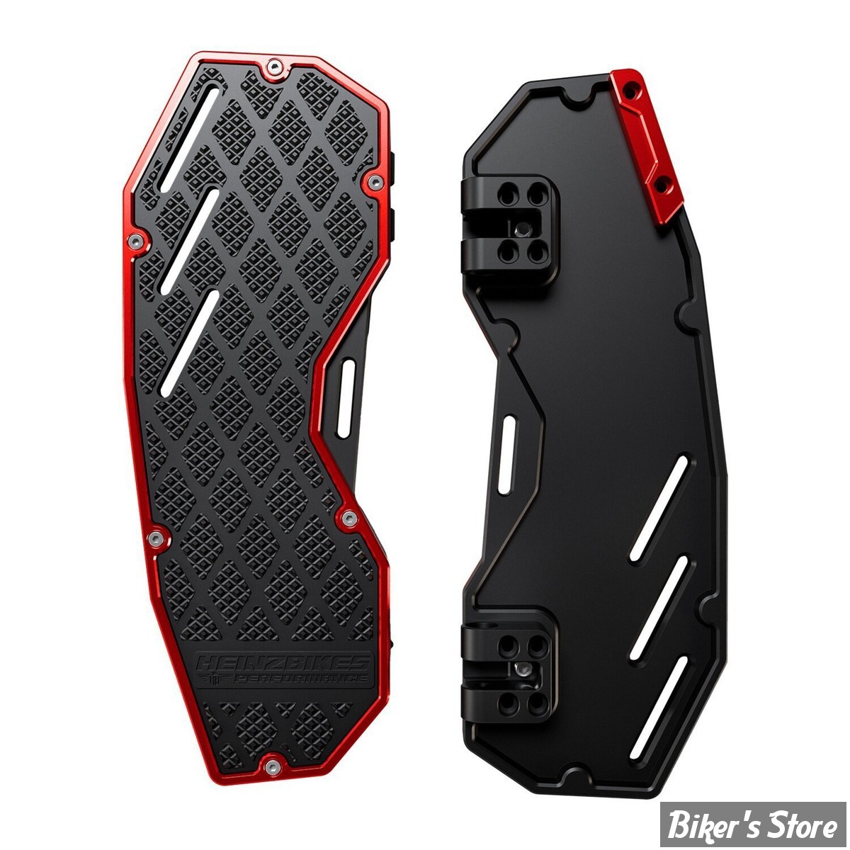 Avec notre design unique et la plus haute qualité, fabriqués à partir d'aluminium billet de haute qualité et fraisés CNC, ils sont plus robustes et plus légers que les autres floorboards du marché - nos nouveaux planchers HeinzBikes® PERFORMANCE. Les FloorBoards ont été conçus pour offrir une garde au sol maximale sans compromettre le confort du FloorBoard sur votre vélo. La GRIP Surface garantit un maintien maximal et une surface de marche adaptée à la forme du pied vous permet d'avoir un contrôle total sur le vélo - même dans des situations extrêmes ! La vis de réglage de l'inclinaison permet d'ajuster la position de conduite préférée par le conducteur et le SlidePad interchangeable sur le dessous protège les FloorBoards même dans des conditions extrêmes.