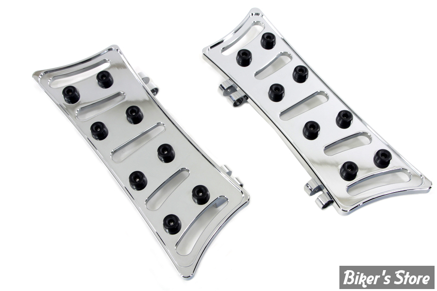 Ces plateformes V-Twin sont proposées en différents style, avec corps Chromé ou finition noir. Selon les références, ,elles sont déclinées avec inserts en caoutchouc, ou non.