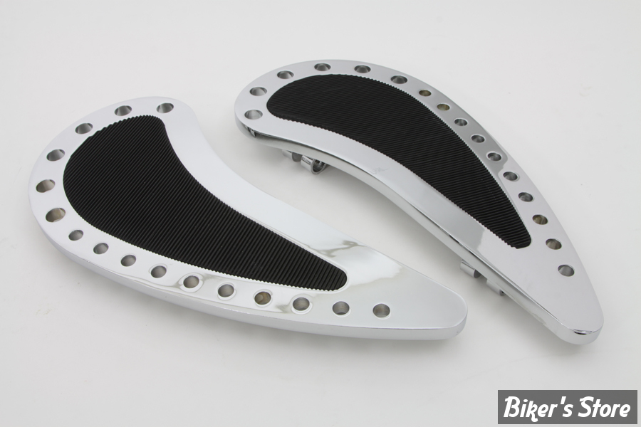 Ces plateformes V-Twin sont proposées en différents style, avec corps Chromé ou finition noir. Selon les références, ,elles sont déclinées avec inserts en caoutchouc, ou non.