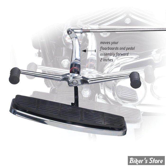 Extension plates that move the floorboards, complete with controls, 2 inches forward. Kit includes chromed aluminum extensions plates, stainless shifter rod.