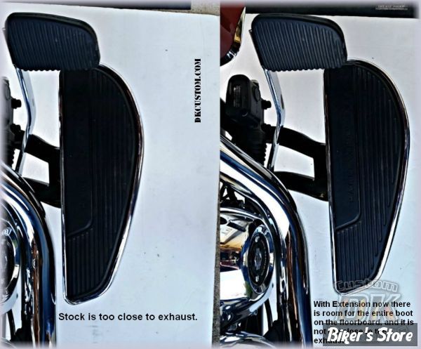 Relocation kit to move the rider's floorboard further 1.5" (38mm) further forward and 1" (25mm) further outward. Will enable you to stretch your legs and improve placement of your feet. Offers additional clearance between knee / air cleaner and foot / exhaust header. Since the floorboard is installed further forward, and although it is also mounted further outwards, it still improves the bike's lean-angle. Easy bolt-on installation. Comes complete with grade 8 stainless mounting hardware and instructions.