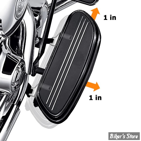 Le kit d'extension déplacera les repose-pieds vers l'avant et l'extèrieur de 1" / 25,4mm - Pour Electra Glide, Road Glide, Street Glide, Road King de 1997 à 2016. Le kit
