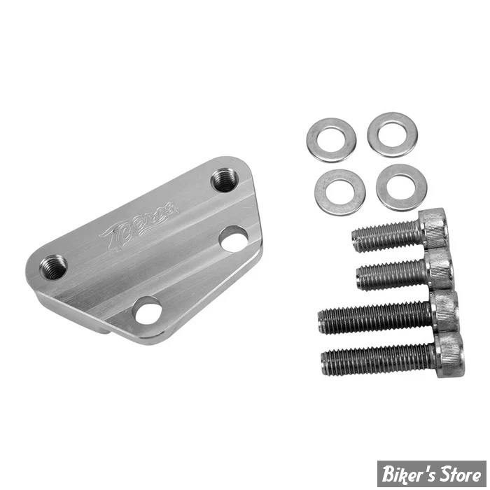 Support pour étrier Brembo 4 pistons (Etrier à commander séparément). Pour l'AVANT des HD de 2000 à 2017 avec disque de frein de 11,5 ou de 11,8" et avec roue usinées (sauf modèles avec jantes à rayons, modèles avec ABS,modèles avec fourches inversées, sauf FXSTD Deuce, Softail M8 à partir de 2018, Sportster Iron 883N à partir de 2014, 1200L de2006 à 2007 ). Le kit
