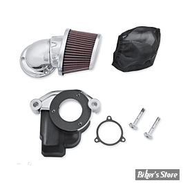 - Le kit inclut un filtre, un tube d'admission, une plaque d'appui custom, une housse de protection contre la pluie et toute la visserie nécessaire au montage