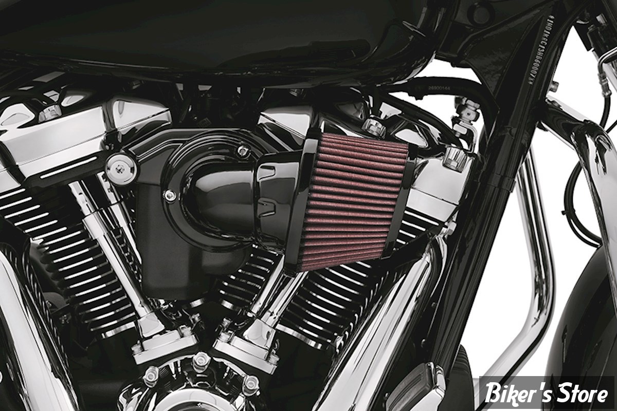 - Conçu avec la transmission Milwaukee-Eight, le légendaire filtre à air Heavy Breather est doté d'un élément de filtre en coton huilé face à l'avant qui fait circuler de grands volumes d'air pur dans le moteur