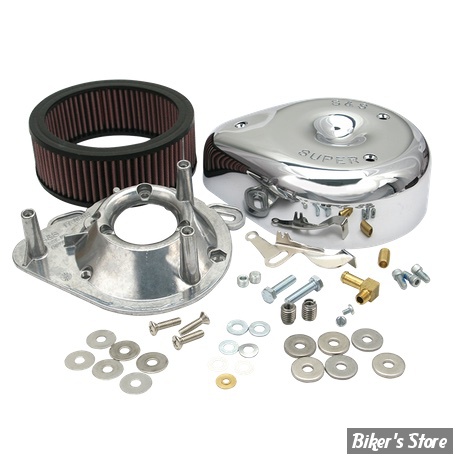 Pour Big Twin de 1984 à 1992 et Sportster de 1986 à 1990 avec carburateur S&S Super E/G. Le kit.