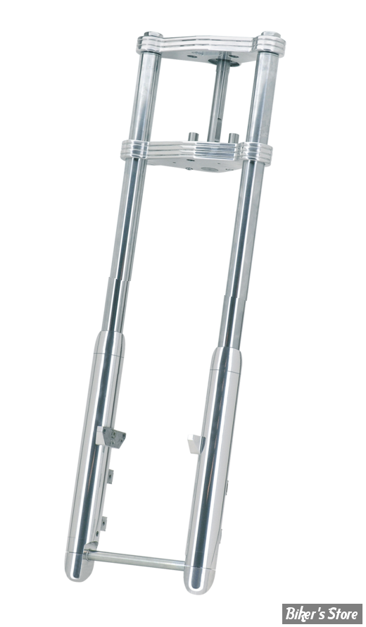 Ton a mis la Fat Bubba au régime! Le résultat est la "Naked Bubba". Comme la Fat Bubba originale elle possède des Tés massifs et des fourreaux de gros diamètre avec axe de roue caché. Tés et fourreaux sont usinés dans un bloc d'aluminium et ont une finition polis ou anodisés noir. Le Té supérieur fait 1 1/8" (29mm) d'épaisseur et le Té inférieur fait 1 5/16" (34mm). Les fourreaux ont un impressionant diamètre de 2 3/8" (60mm) et ont des supports d'étrier ainsi que dque des supports d'étrier double disque. Les fourreaux de fourche ont de caches poussière en aluminium usiné. Il existe de supports d'étrier pour des étriers type 1984-1999 ou 2000 au présent pour étriers d'origine ou aftermarket mais ils doivent être commandés séparéments. L'axe de roue avant est caché pour donner un look extra lisse. Les fourches sont disponibles en +2", +3", +4", +6", + 8", +12", +14" et +16" de long que les FL (leur longueur actuelle est également sur la liste) et ont des Tés inclinés de 0, 3, et 6 degrés. Ces fourches "Naked Bubba" sont livrées complètes avec trois types de butées pour aller avec la plupart des cadres stock ou aftermarket.Une bouteille d'huile est comprise avec chaque fourche.
