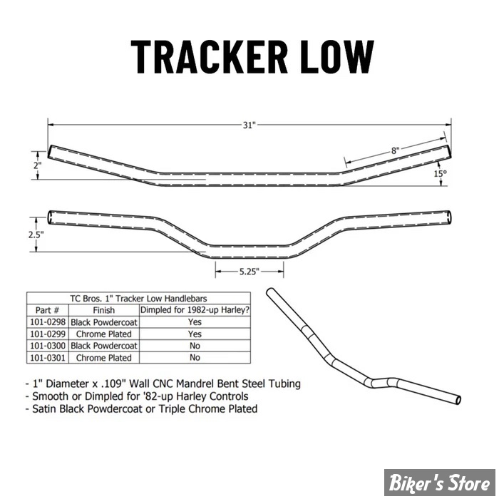 The equipment used in performance and competition always finds its way to the street. The Tracker and Tracker Low handlebars by TC Bros. have the flair found on the dirt but they're both set up for riders who want that look on street-going machines.