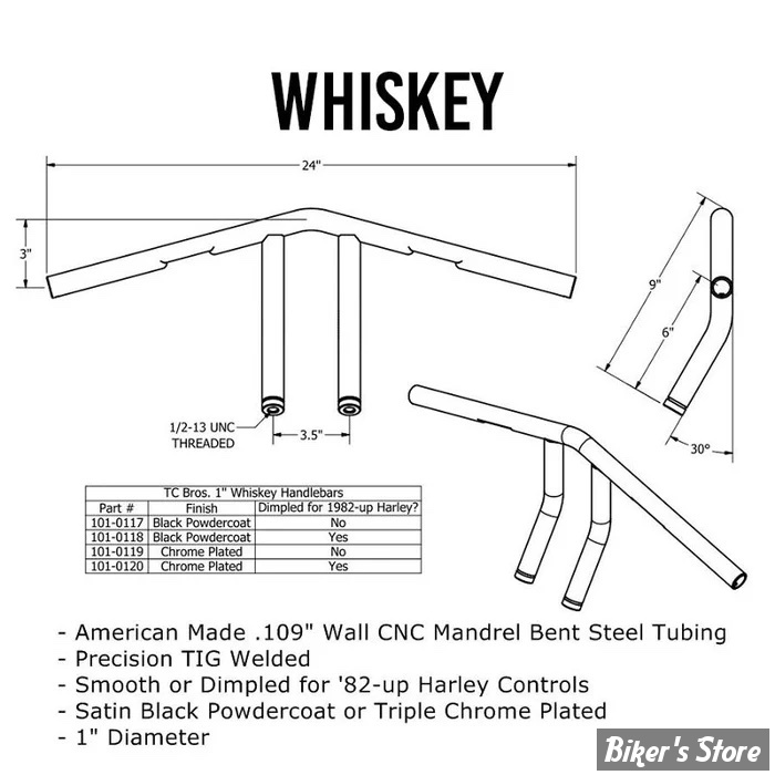 TC BROS. 1" WHISKEY HANDLEBAR