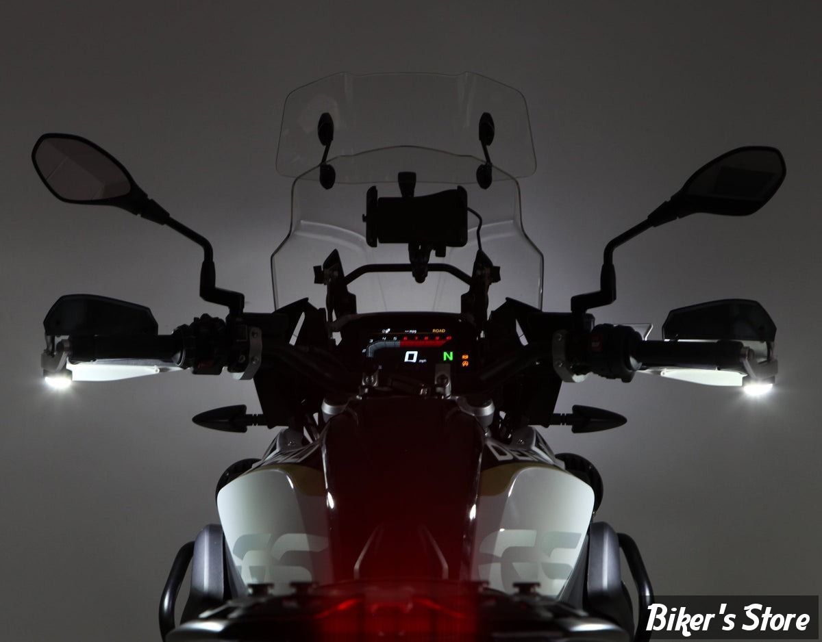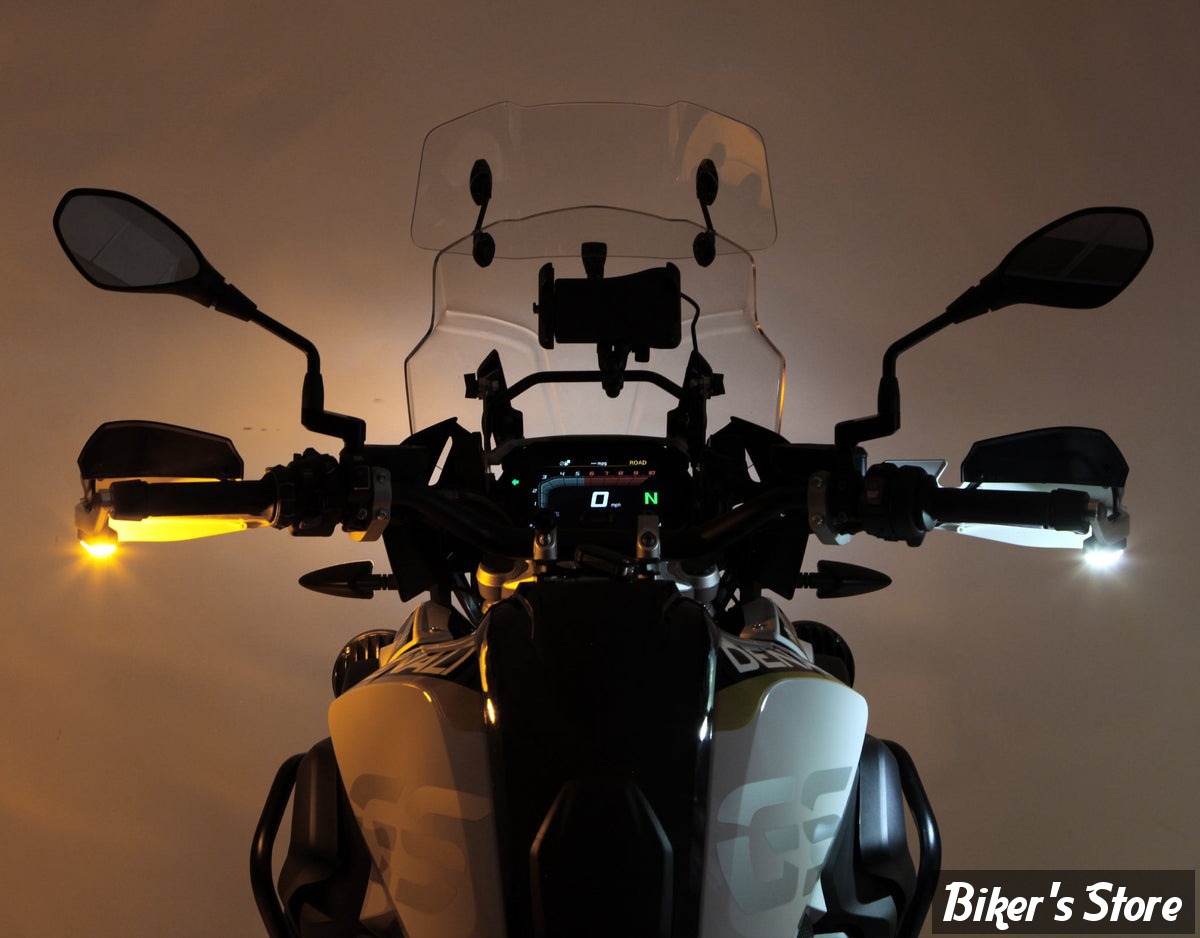 - Illumine tout le côté de la moto lorsque le signal orange clignote