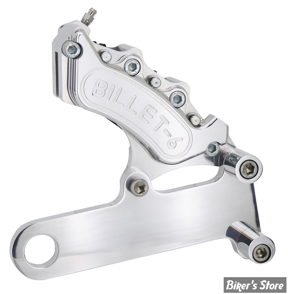 Ken Harrison de Harrison Engineering a été un des premiers dès 1986 à développer et dessiner des étriers de freins multi-pistons pour Harley-Davidson. Chaque étrier 4 ou 6 pistons est usiné CNC à partir d'aluminium qualité aviation. Pour conserver des tolérances internes minimales ces étriers légers sont fabriqués à partir d'un aluminium à faible dilatation thermique. Les pistons ont une finition anodisée dure qui a les mêmes propriétés que l'acier pour éviter les frictions. Il y a un jeu de plaquettes pour chaque paire de pistons ce qui est meilleur en temps de pluie car le premier jeu de plaquettes évacue la pluie pour les autres plaquettes. Ces étriers polis miroir n'ont pas seulement un look superbe ils ont également des performances ultimes de freinage et sont disponibles pour la plupart des modèles. Les étriers avant se fixent comme à l'origine tandis que les arrières ont une patte de fixation fournie. Des rondelles de calage ainsi que les vis sont fournies dans chaque kit. L'avant comme l'arrière existent en version 4 ou 6 pistons et sont polis miroir ou anodisés noir. Leur design qui se marrie parfaitement avec les disques Harrison's que vous trouverez ailleurs dans le catalogue. Tous les étriers Harrison sont approuvés par le homologué et ont une garantie à vie limitée.