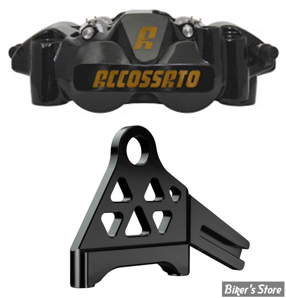 - Le nouvel étrier de frein radial, composé de deux pièces et fabriqué dans la masse, enrichit la gamme d'étriers Accossato. Conçu avec les technologies les plus avancées et les meilleurs matériaux du marché, il l'est tout particulièrement par sa structure usinée CNC 5 axes. Sa forme a été réalisée grâce à la recherche CAO afin d'obtenir un poids minimal, une rigidité optimale du corps et une capacité de déperdition thermique optimale grâce à un traitement spécial d'oxydation dure. Lors de l'usinage, le corps de l'étrier est entièrement contrôlé par des machines de laboratoire tridimensionnelles. L'entraxe des trous de fixation des étriers est de 108mm. Accossato recommande l'utilisation de liquide de frein DOT 4. Les étriers sont fournis avec des plaquettes de frein frittées.