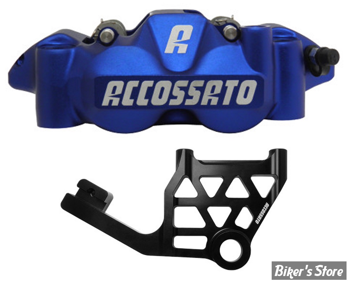 - Le nouvel étrier de frein radial, composé de deux pièces et fabriqué dans la masse, enrichit la gamme d'étriers Accossato. Conçu avec les technologies les plus avancées et les meilleurs matériaux du marché, il l'est tout particulièrement par sa structure usinée CNC 5 axes. Sa forme a été réalisée grâce à la recherche CAO afin d'obtenir un poids minimal, une rigidité optimale du corps et une capacité de déperdition thermique optimale grâce à un traitement spécial d'oxydation dure. Lors de l'usinage, le corps de l'étrier est entièrement contrôlé par des machines de laboratoire tridimensionnelles. L'entraxe des trous de fixation des étriers est de 108mm. Accossato recommande l'utilisation de liquide de frein DOT 4. Les étriers sont fournis avec des plaquettes de frein frittées.