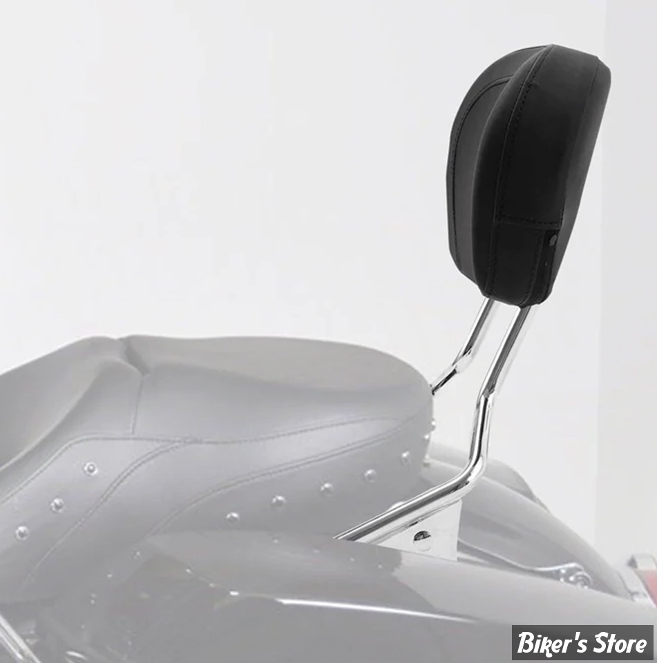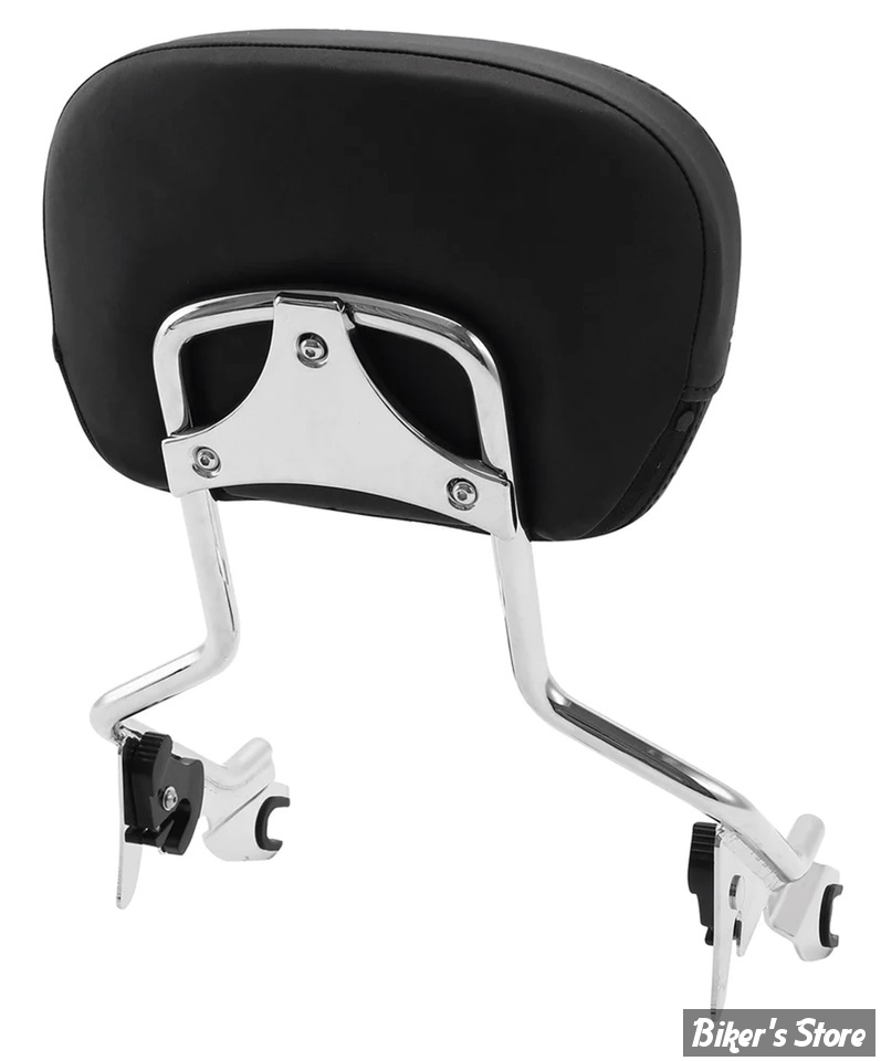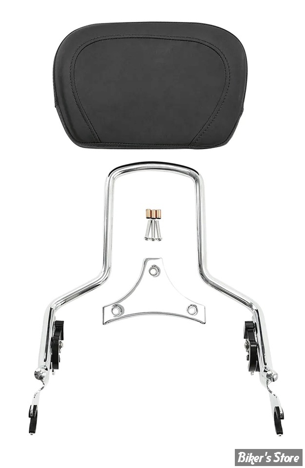 Pour ceux qui souhaitent changer d'accessoires rapidement et facilement, voici ce support de sissy bar passager avec le coussin assorti. Le kit a une hauteur totale de 47cm, le coussin mesure 32cm de large et 23cm de haut. Ne va pas avec le Tour-Pak monté rigide.