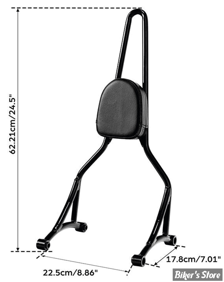 Sissy bar haut noir avec coussin, hauteur totale 62cm