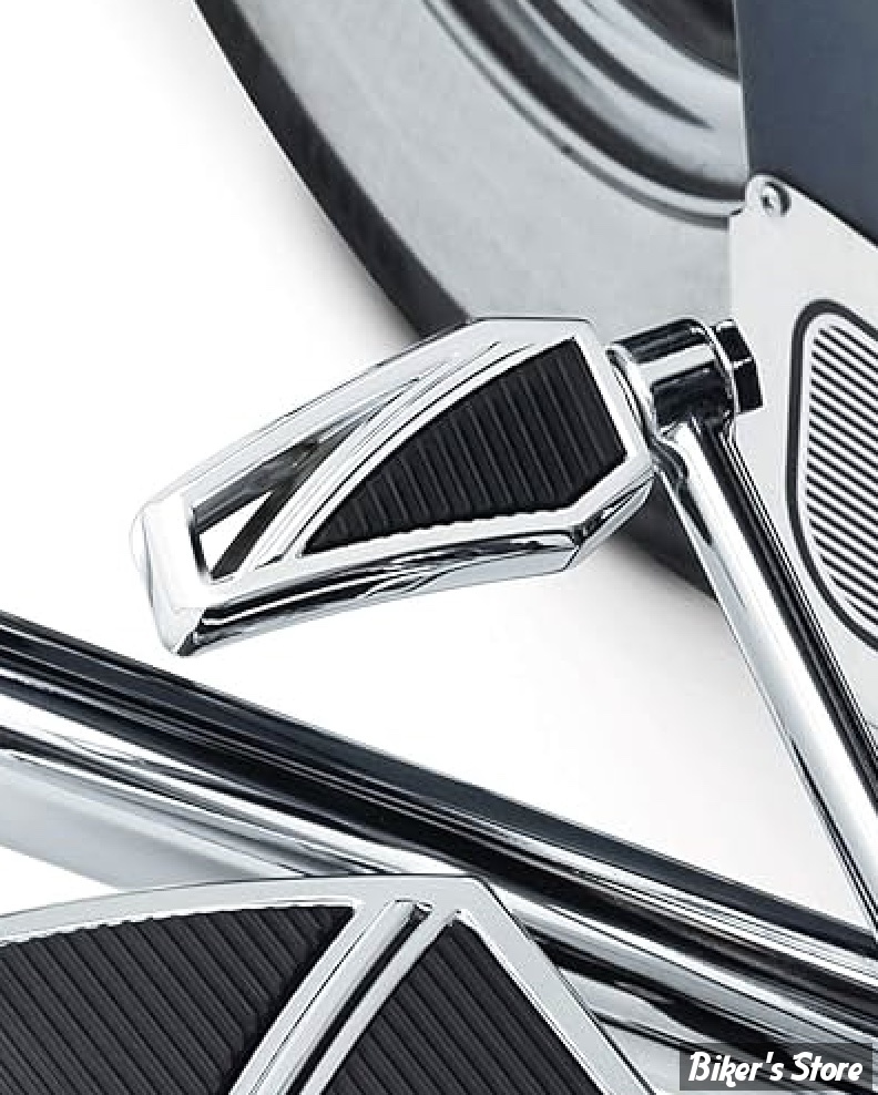 Quality A380 aluminum with EPDM serrated rubber insert for foot traction. Modern, aggressive styling with subtle sculpted lines.