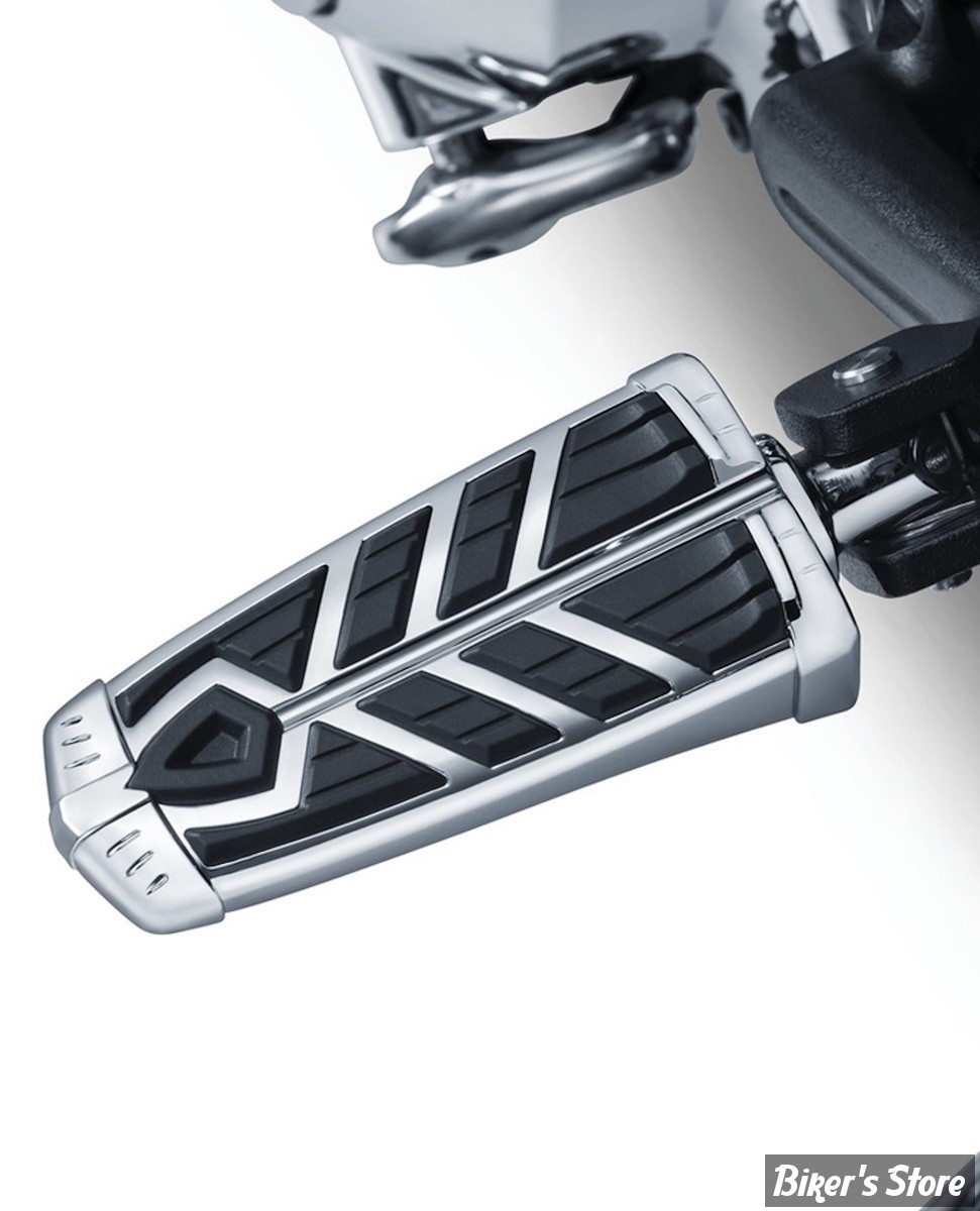 - KYN - SPEAR CHROME - REPOSES PIEDS KURYAKYN - SPEAR FOOTPEGS - SANS EMPREINTE (SPLINED) - FINITION : CHROME / CAOUTCHOUC NOIR - 5658