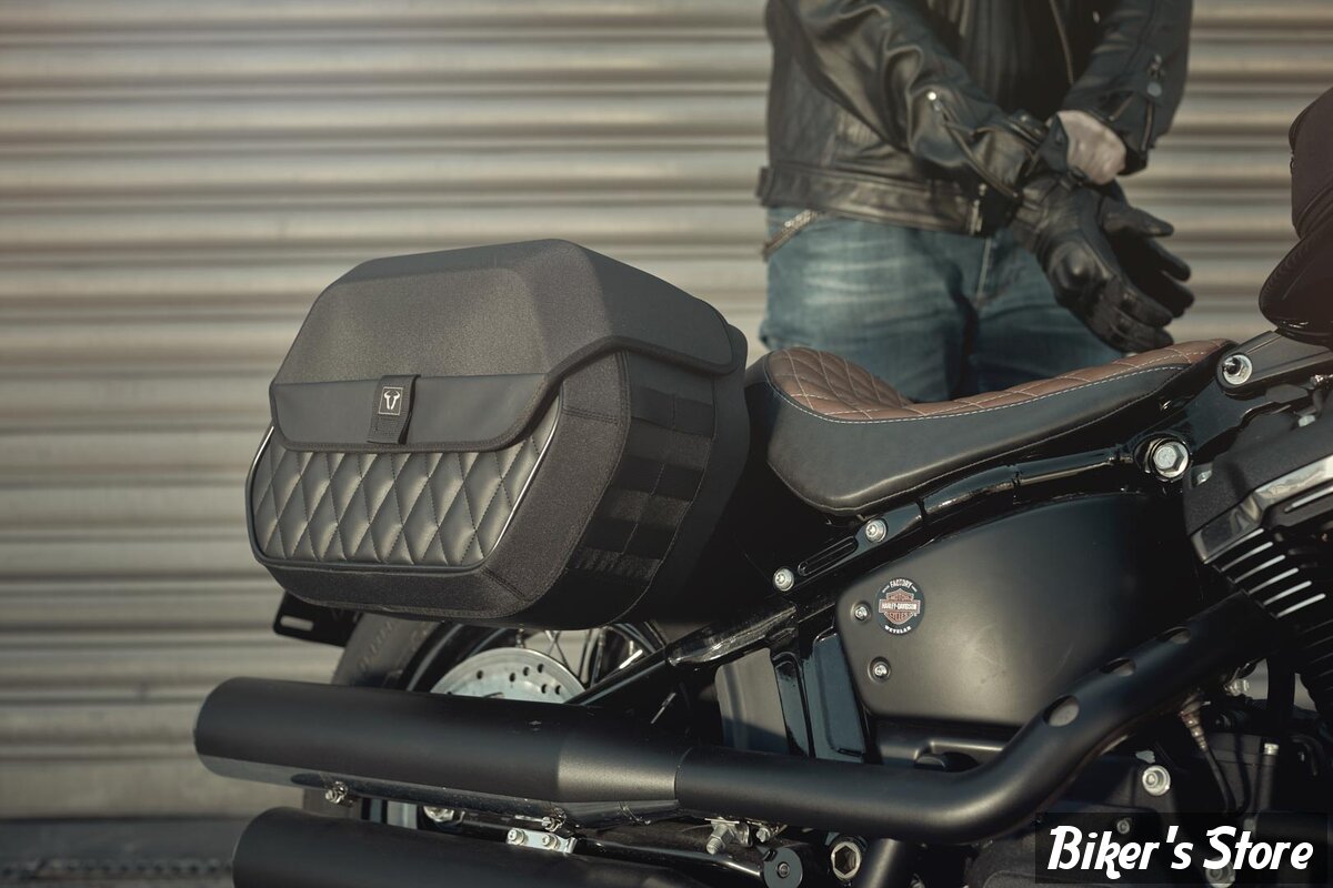 Nouvelle interprétation du style Legend Gear associée à des matériaux high-tech et un système de montage moderne : la sacoche latérale LH combine la légèreté d’une sacoche avec la stabilité d’une valise rigide. Montage rapide sur le support de garde-boue grâce à un mécanisme de verrouillage intégré. Sans bagages, seuls des points de fixation discrets restent visibles sur la moto.