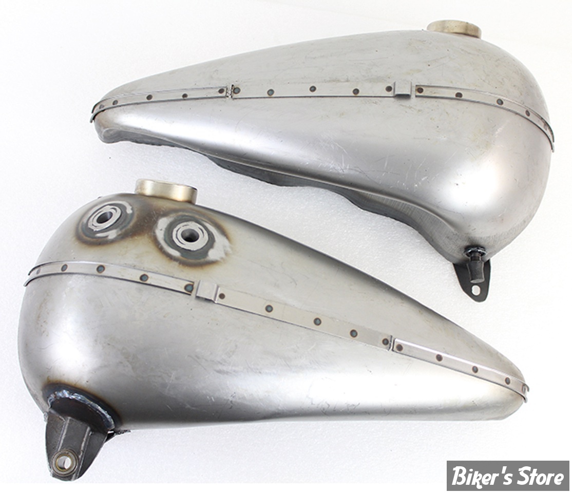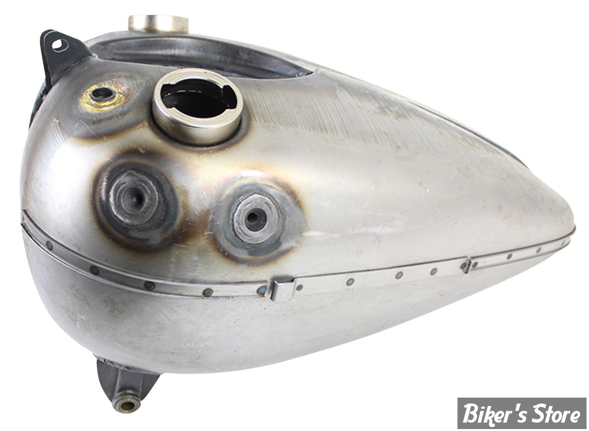 V-Twin Mfg. reproduction du réservoir de 3,5 gallons (13,2 litres) vitesses à main, longtemps indisponible, tel qu'utilisé sur les Big Twin à soupapes en tête de 1941 à 1946. Pour robinet, emblêmes, supports, bouchons, conduite d'essence et le guide de levier de vitesse d'origine. Aucun montage des emblèmes. Nécessite une cale pour donner un alignement correct du tableau de bord Cat-Eye, du montage de la conduite de carburant et pour obtenir la hauteur correcte.
